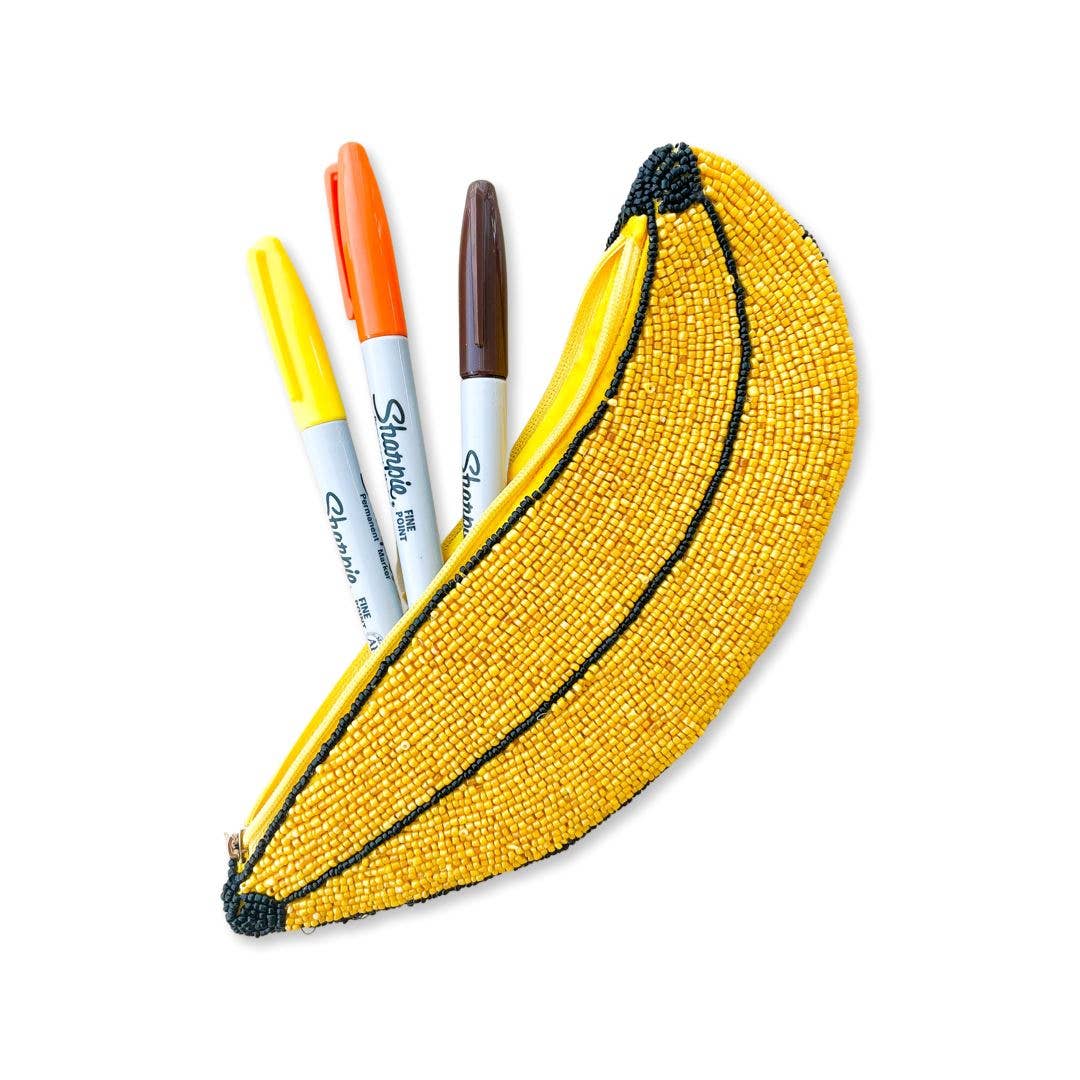 We're bananas for this hand-beaded banana pouch! Use it as a clutch or as a pencil pouch. This cute bag is the perfect everyday accessory! Color variation may occur. That's what makes it unique!
