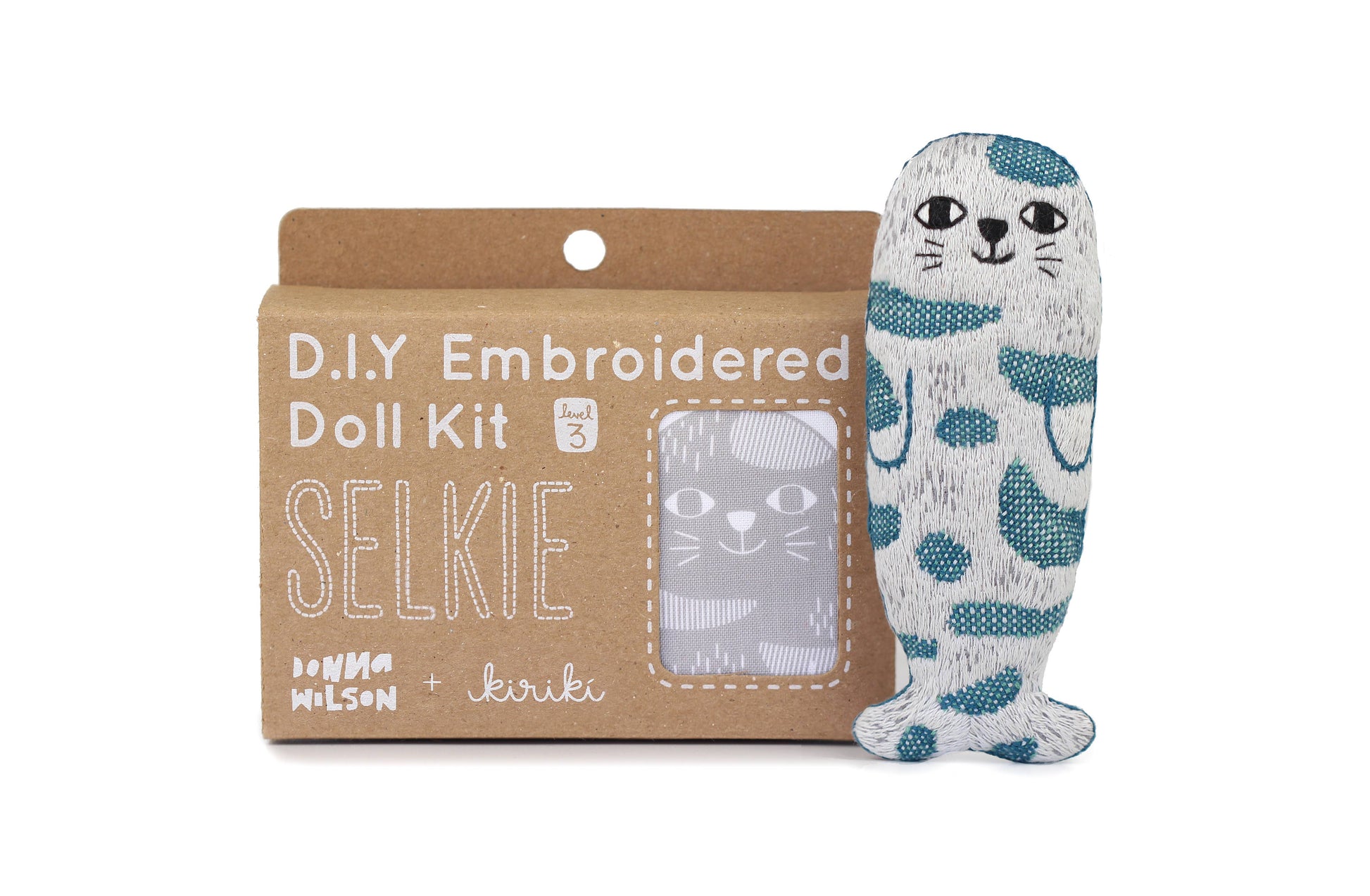 This is a limited edition collaboration between Donna Wilson and Kiriki Press, transforming Donna’s Creature into a pocket-sized DIY Embroidered Doll Kit. Selkie is a Level 3 pattern, using a variety of stitches that cover up most of the pattern surface. Great for adventurous beginners or seasoned stitchers! All Kiriki patterns are screen printed by hand with vibrant, water-based inks right onto the fabric so no tracing or transferring is ever required!