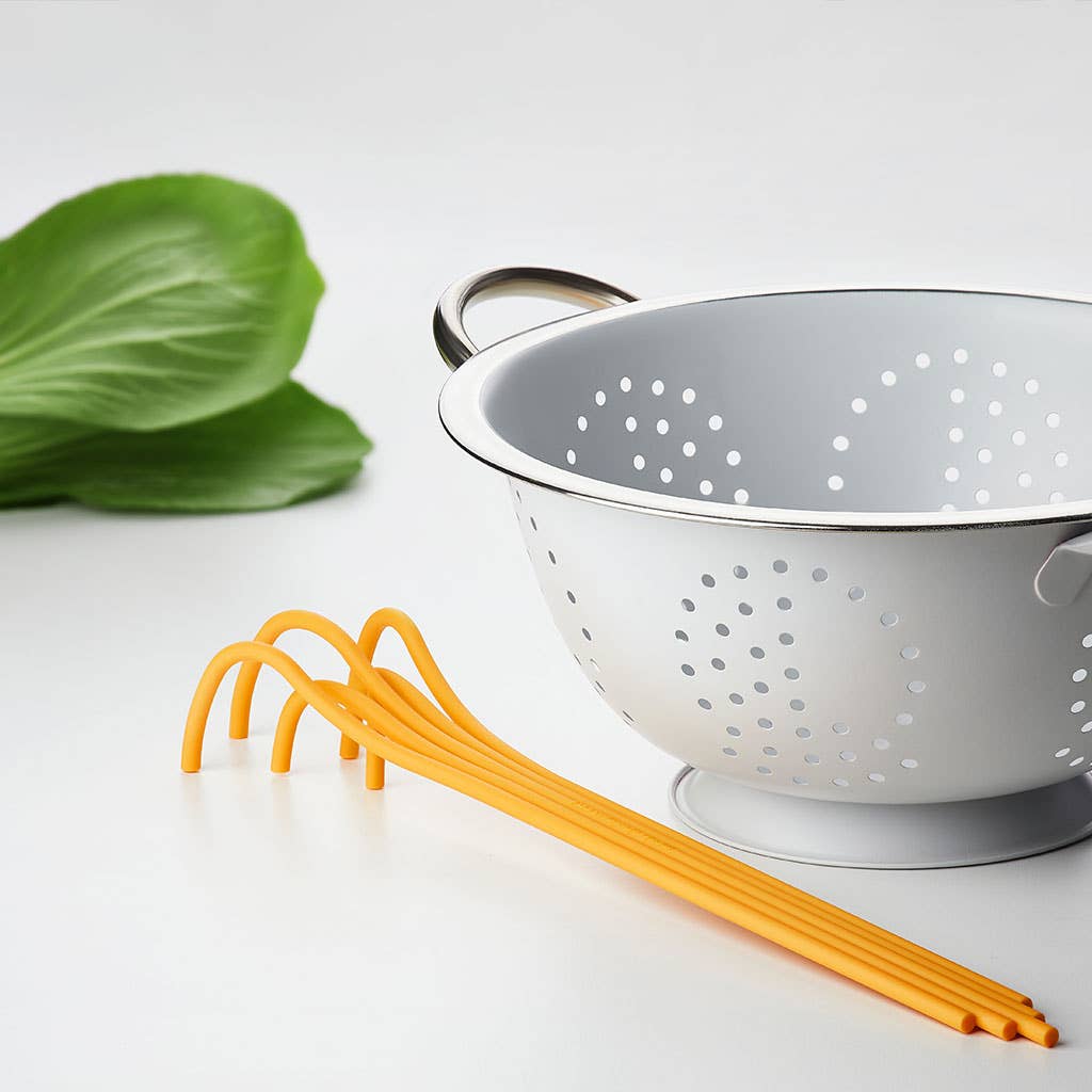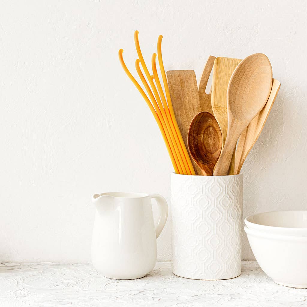 A spaghetti shaped serving spoon from heat resistant plastic. Heat resistant, up to 120°c 248°f.