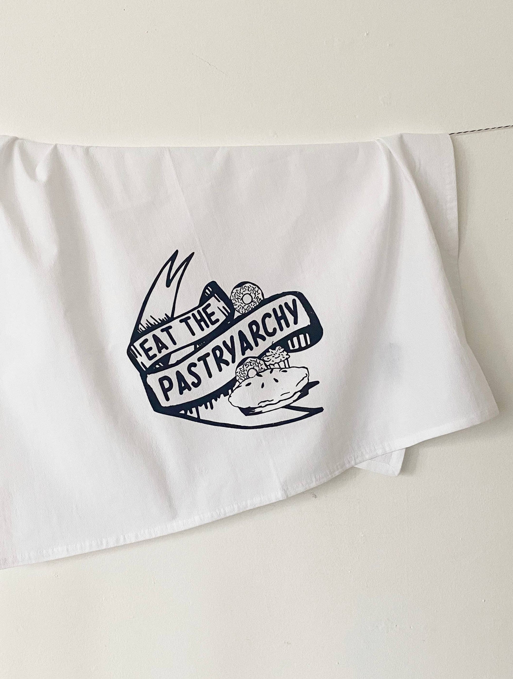 I see you, pie. Hand screen printed with Earth friendly inks and solvents in Montana. 100% cotton towel is machine washable and reusable and measures 30"x30"